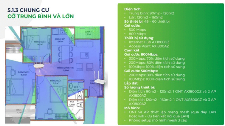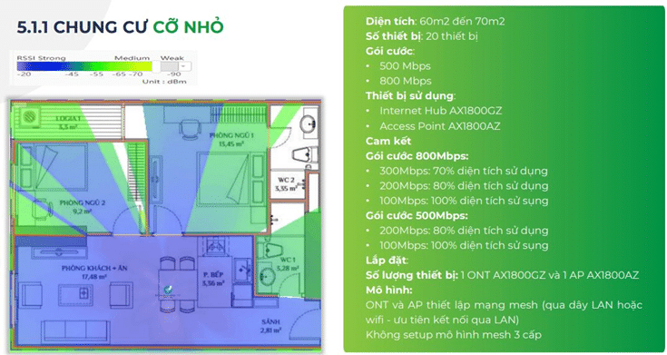 | Vùng phủ mở rộng | – Vùng phủ mở rộng 15%-23% – Không cần thêm Access Point, tiết kiệm chi phí – Cover được 30 thiết bị (so với 12 thiết bị như hiện tại) |