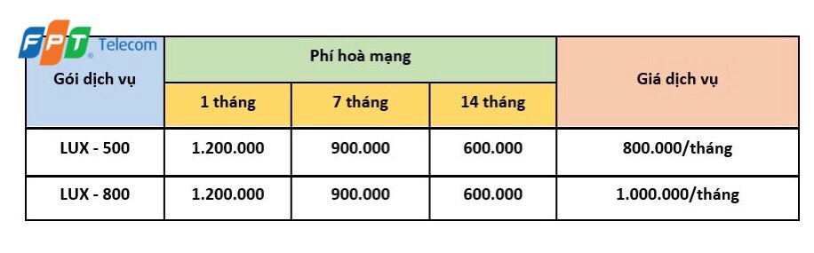 3.1. Bảng giá gói internet LUX FPT